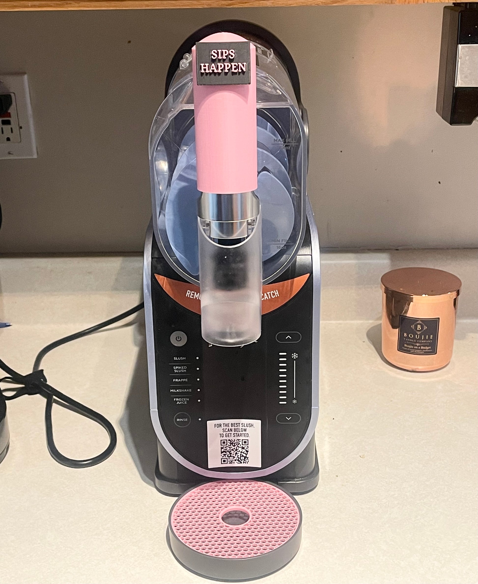 Unleash your inner ninja with the 3D Sips Happen Ninja Handle! This 3D printed handle is specifically designed for your favorite slushie maker, providing a comfortable grip for your sipping pleasure. Plus, for an additional fee, you can add on a drip tray to keep your counters clean. Upgrade your slushie game today!