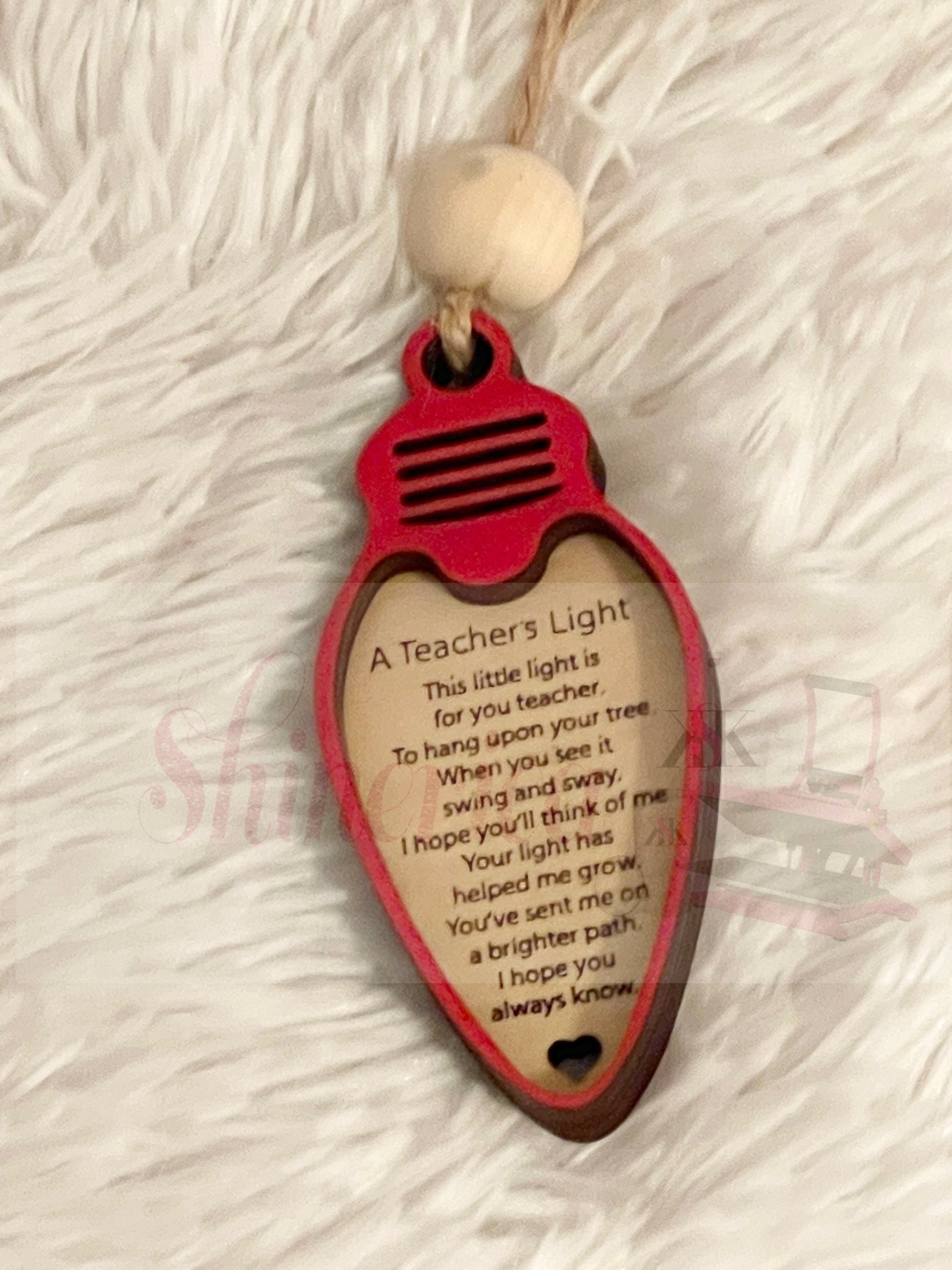 Bring joy into the life of a teacher with this unique wooden ornament! Crafted with care, it provides a heartfelt reminder of your appreciation for their hard work. Personalize it with your favorite color to make it even more special!