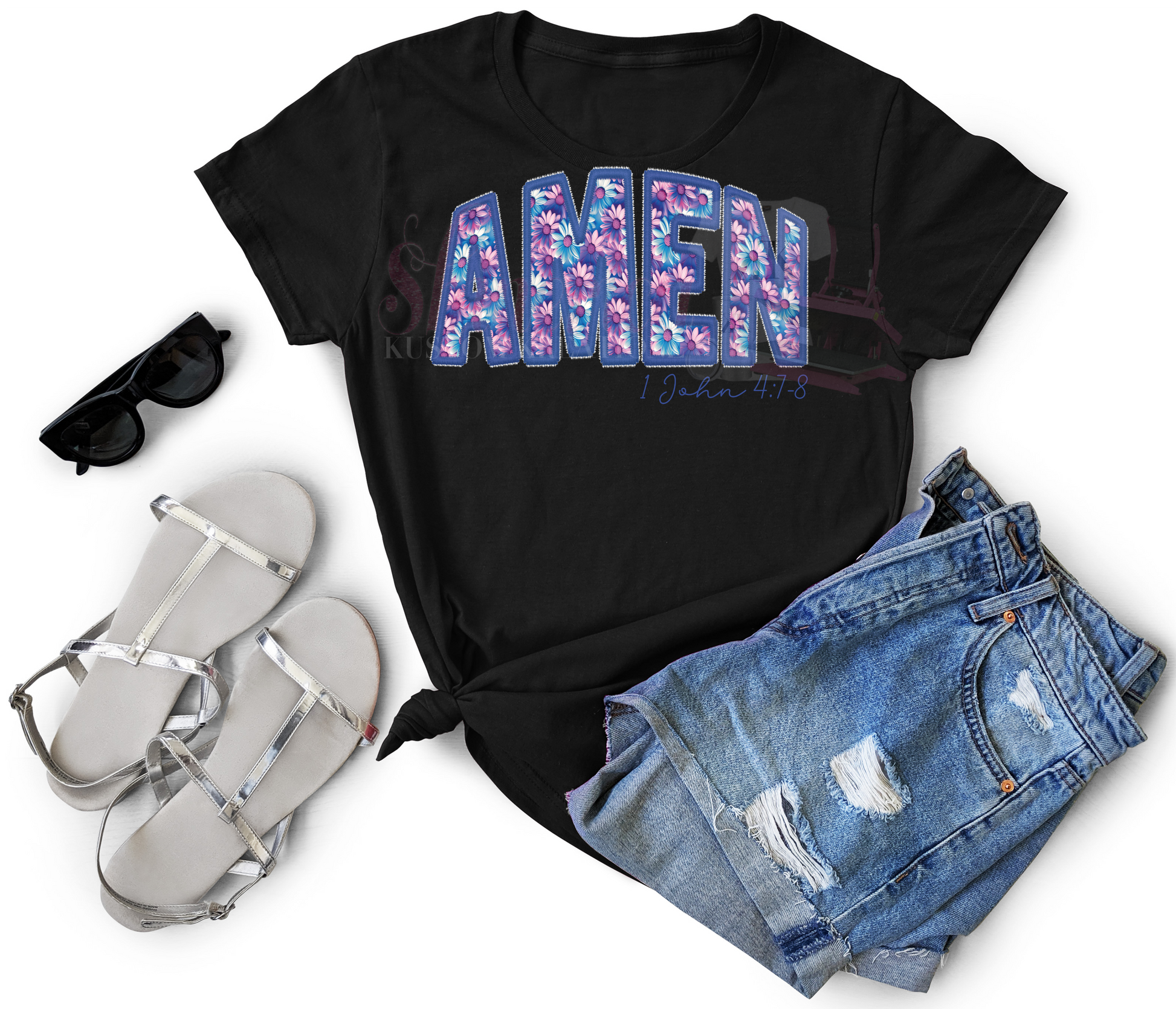 Say Amen in style with this beautiful floral-blue design! Made with a faux embroidery, it will bring a modern yet sophisticated look to any outfit. Make a statement without saying a word!