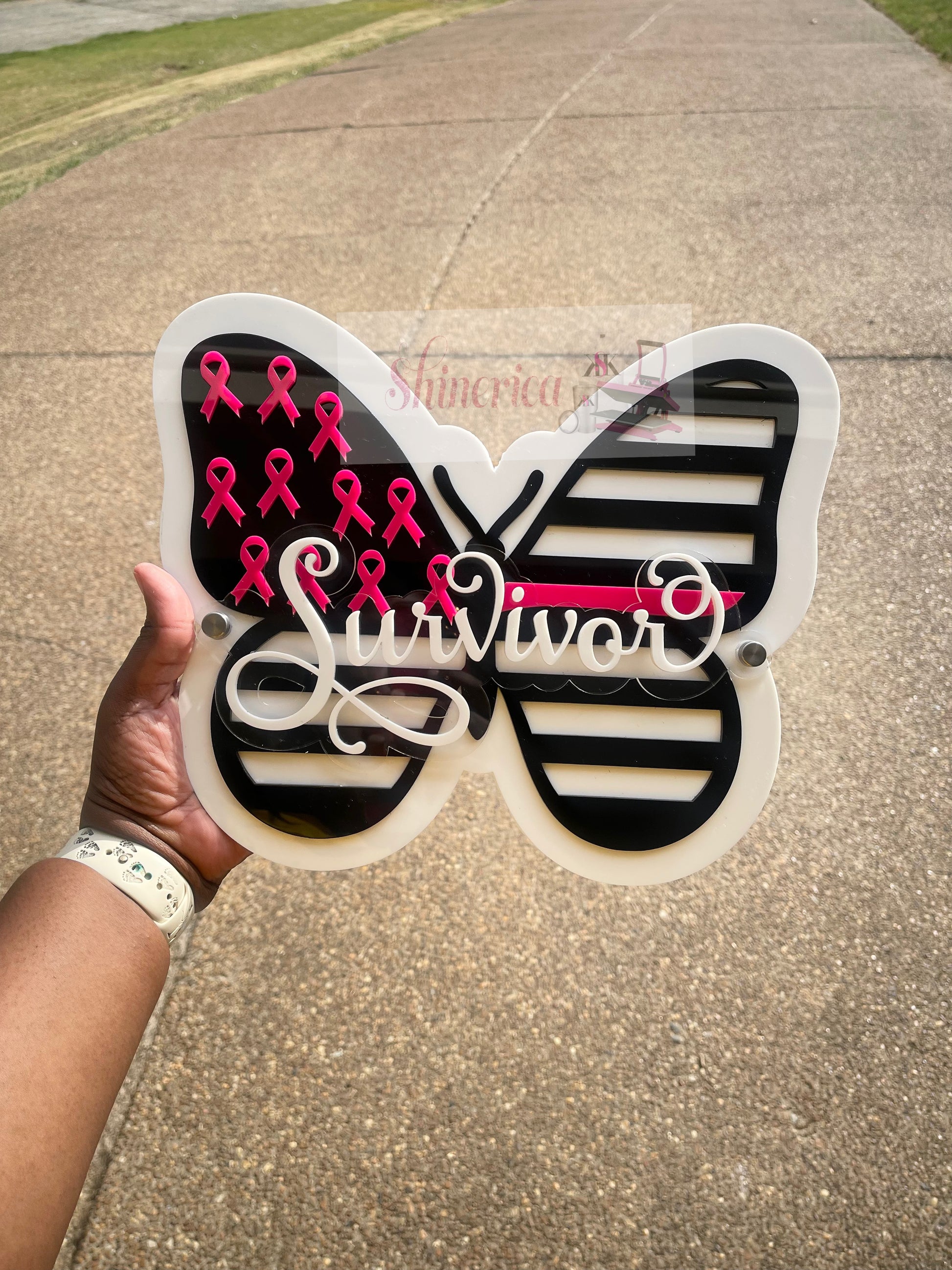 Elevate your style and support important causes with our Awareness Butterfly. Made from durable acrylic, the pink in the butterfly may be swapped out for another color to bring awareness to domestic violence, lupus, breast cancer, kidney cancer, childhood cancer etc. Make a statement and make a difference.