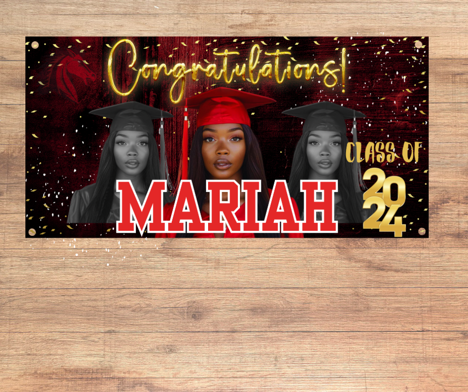 Elevate your graduation celebration with our durable vinyl banner! Customize with a graduate's photo, and with a size of 3x6, it's the perfect addition to any party or ceremony. Order now and receive a mock-up of your banner for the perfect display. Celebrate in style with our customizable banner!