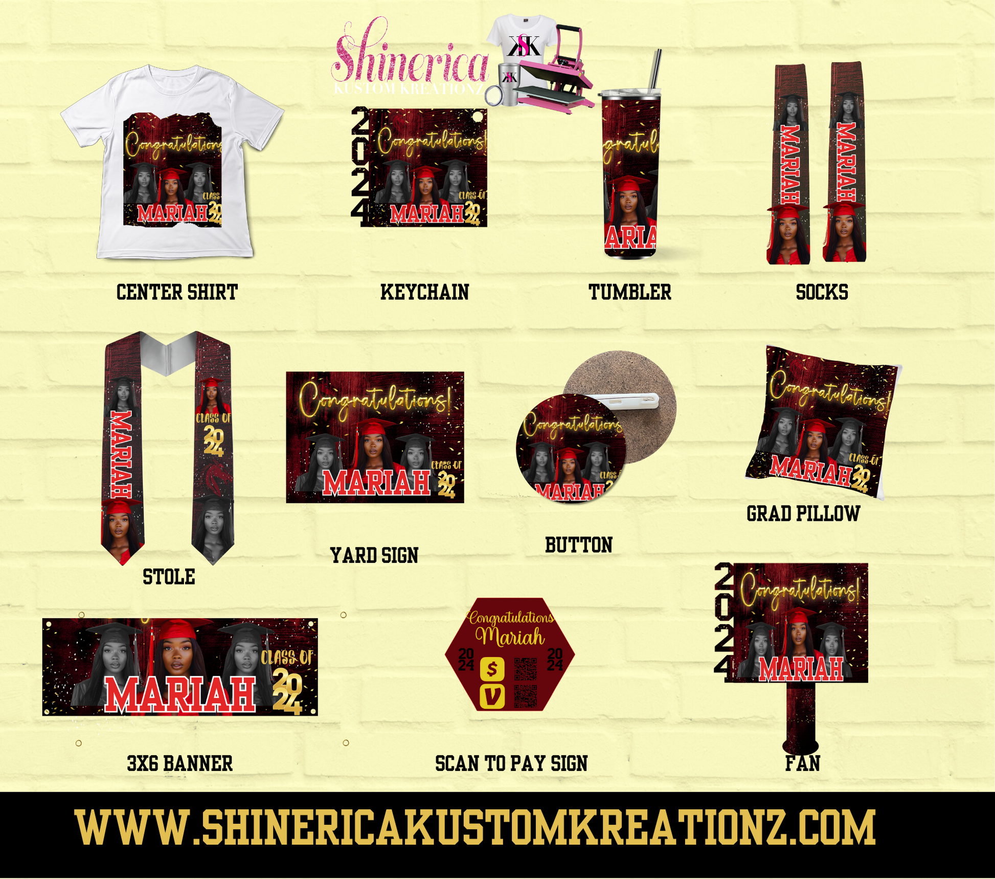 Create the ultimate graduation experience with a personalized bundle! Choose from an array of custom items including t-shirts, tumblers, stoles, blankets, keychains, and fans. Build your perfect bundle to commemorate your special achievement. Celebrate your success in style with this one-of-a-kind graduation bundle!