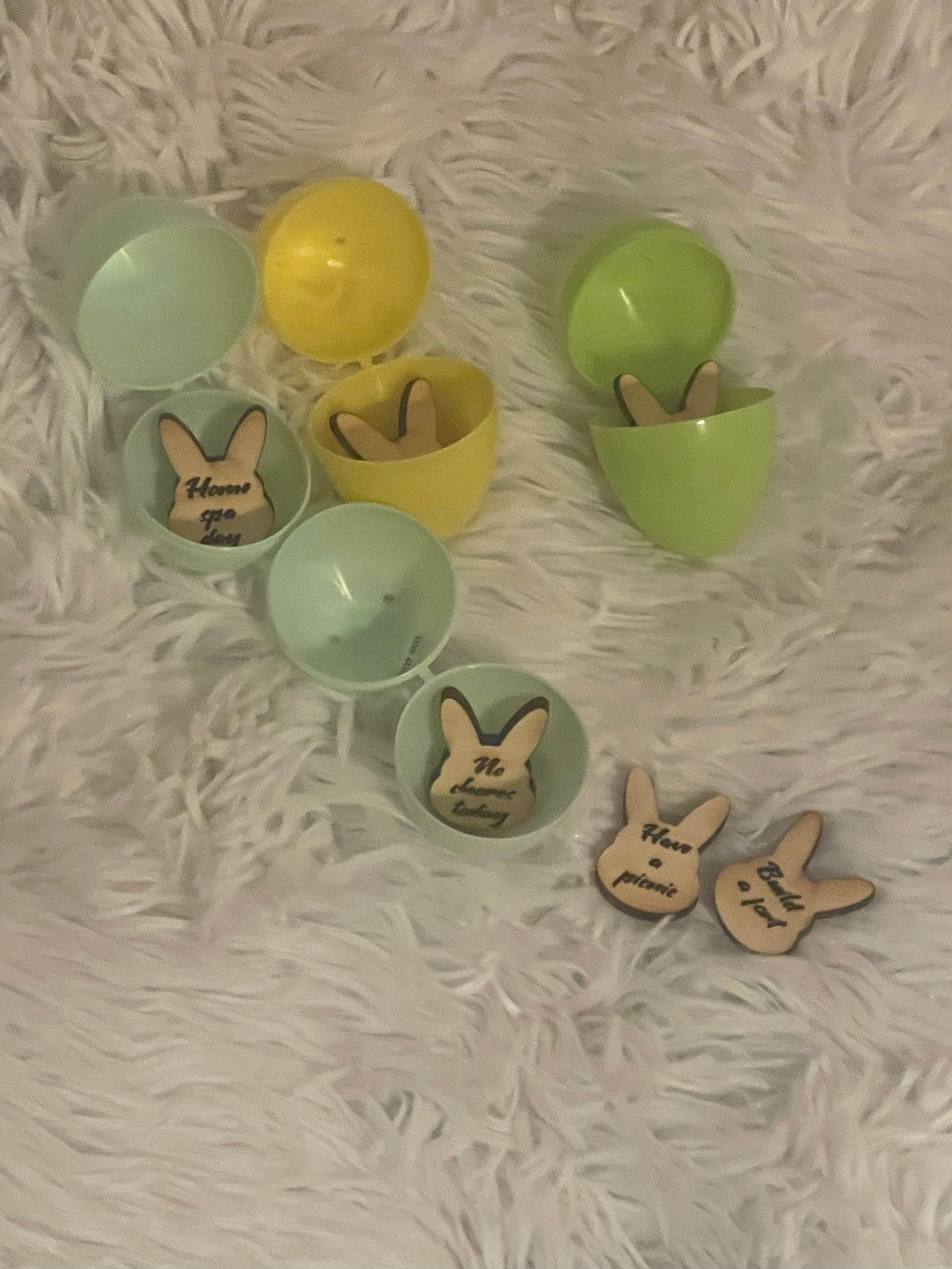 Make Easter extra special by giving Easter Tokens! Crafted from genuine wood, these tokens come in a few styles, designed to fit inside plastic Easter eggs (not included). Fun and unique, these tokens add a special touch to your Easter celebrations. What will you discover in your Easter eggs?