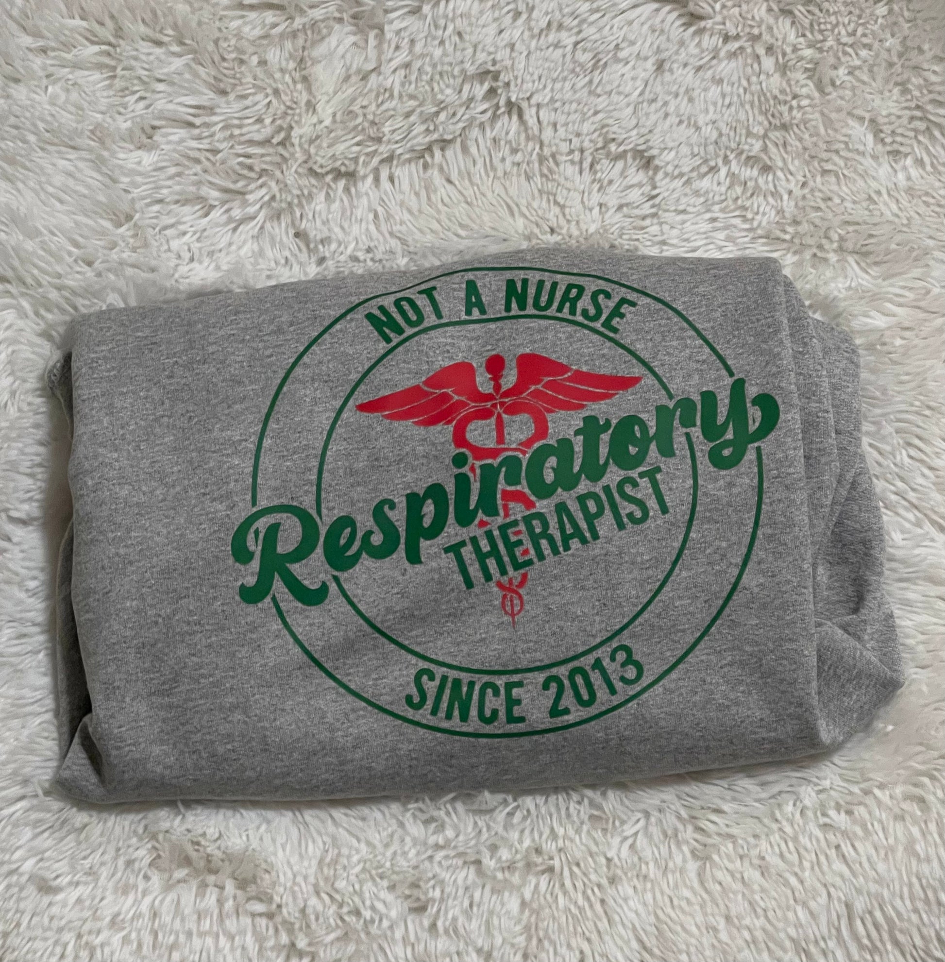 Ready to show the world that you're not a nurse? Spread the message in style with our Not A Nurse sweatshirt! Our custom-designed sweatshirt features a bold statement of your profession as a respiratory therapist. Make sure to let everyone know your true identity with this stylish and comfortable top. Who said workwear couldn't be fashion-forward?