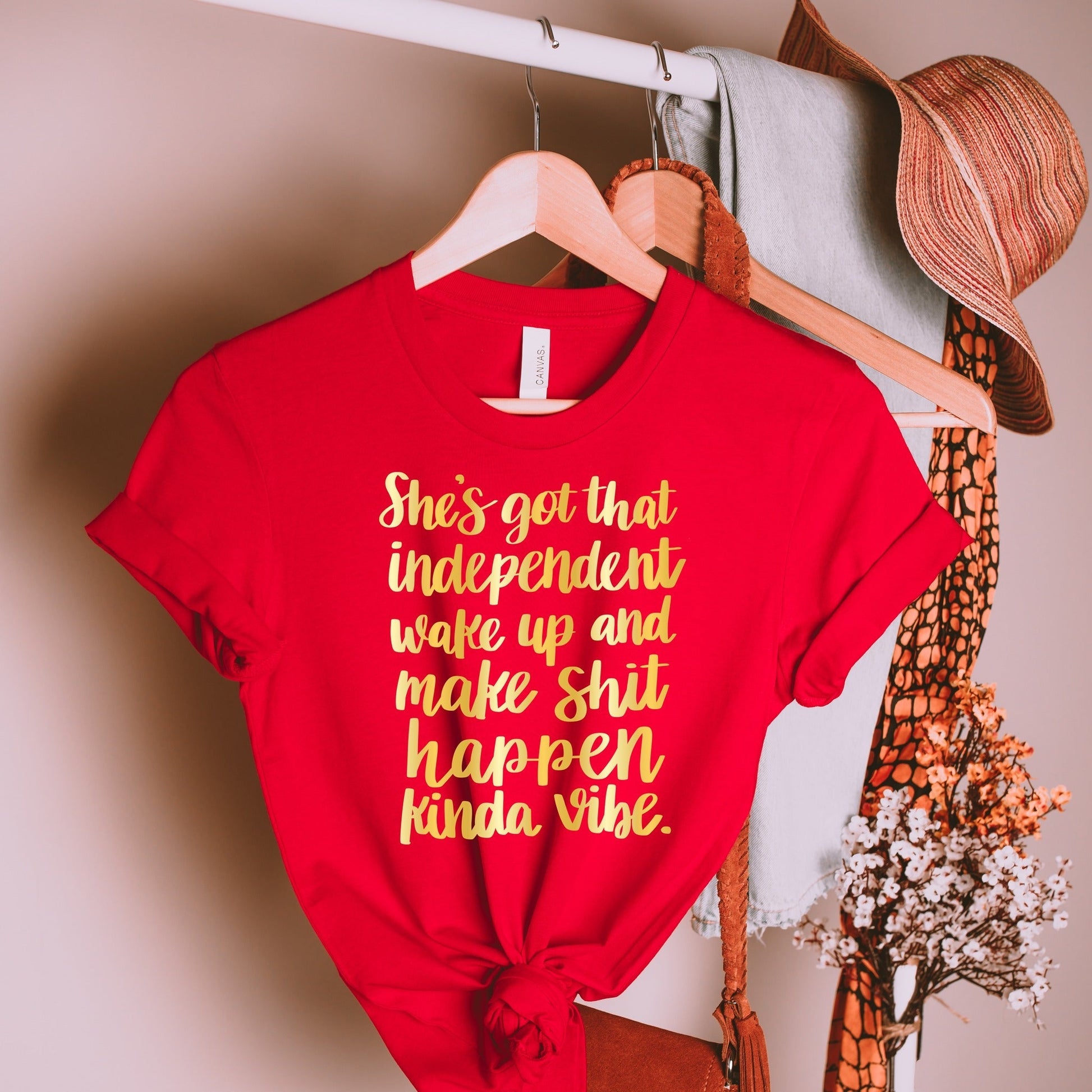 Make a statement with our new She Got That Make Shit Happen Vibe shirt. Show that you have a passion for life and an energy for making the impossible, possible. Feel empowered, confident, and unstoppable wearing this shirt – you'll be ready to take on anything that comes your way!
