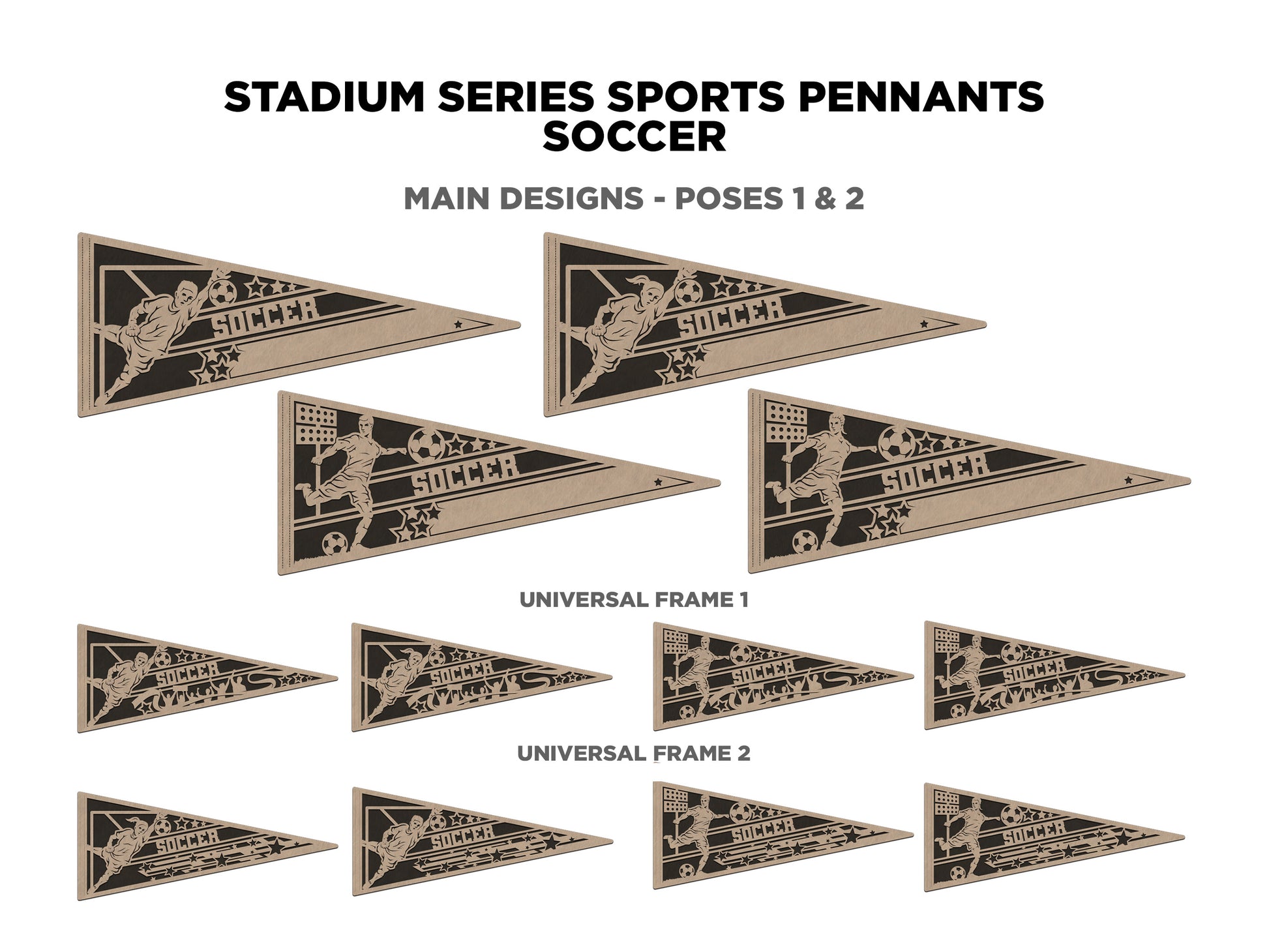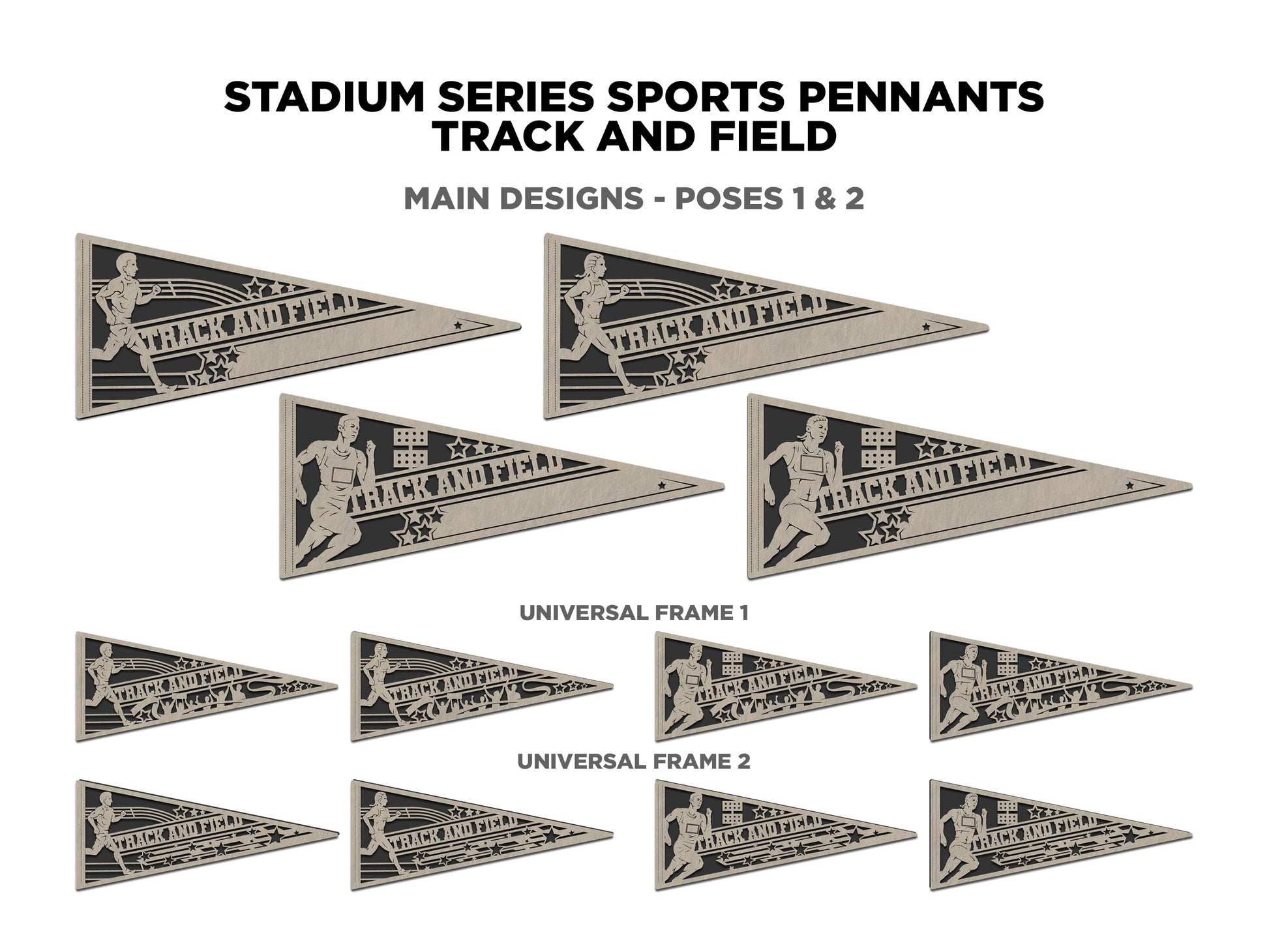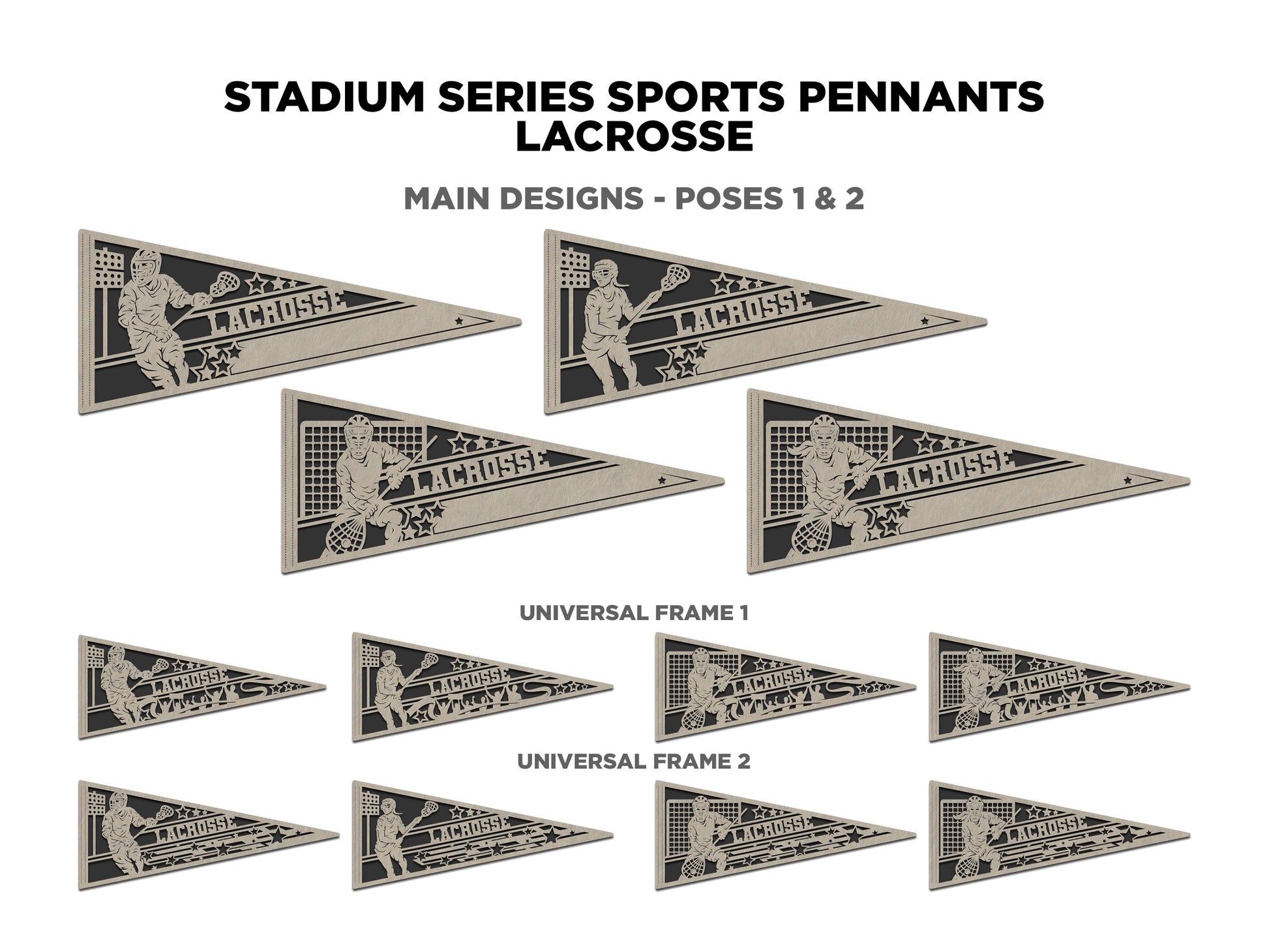 We have a variety of standard sports pennant designs along with personalized options where you can add a name, number, position and even team name. Both of these versions will make a perfect keepsake or gift for that special athlete in your life. The sports pennants are hand crafted from wood.
